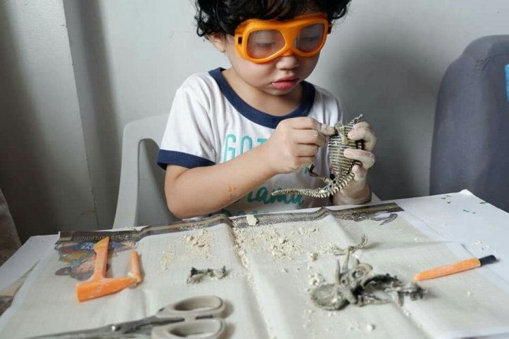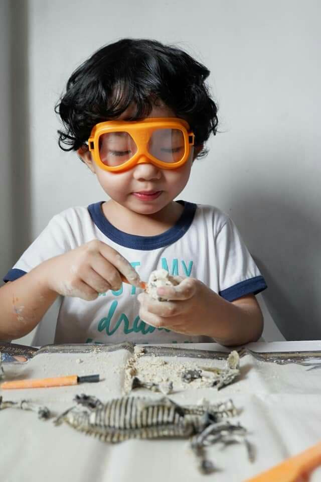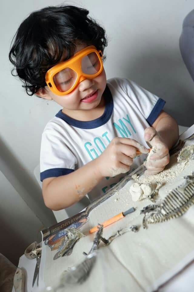 This activity teaches children about dinosaurs, and more specifically, their bones and the fossils that have been found. These ideas come to life when your child has the chance to practice them in the playful, hands-on way this activity provides.