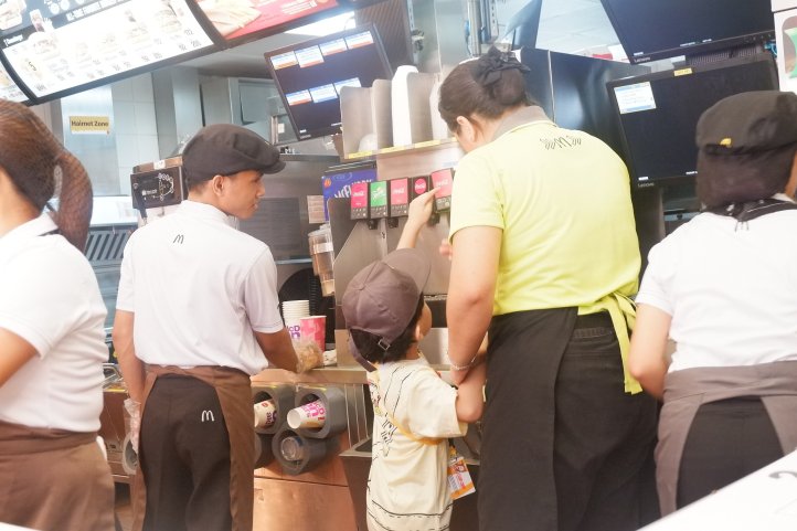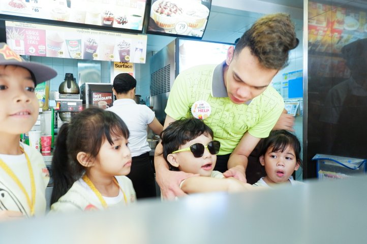 Soon thereafter, the kids all lined up and went to on the floor training hinati sila sa two groups yung isa inilagay sa counters (bigger kids) and yung mga maliliit ay sa Entrance door para e-greet ang mga customers.