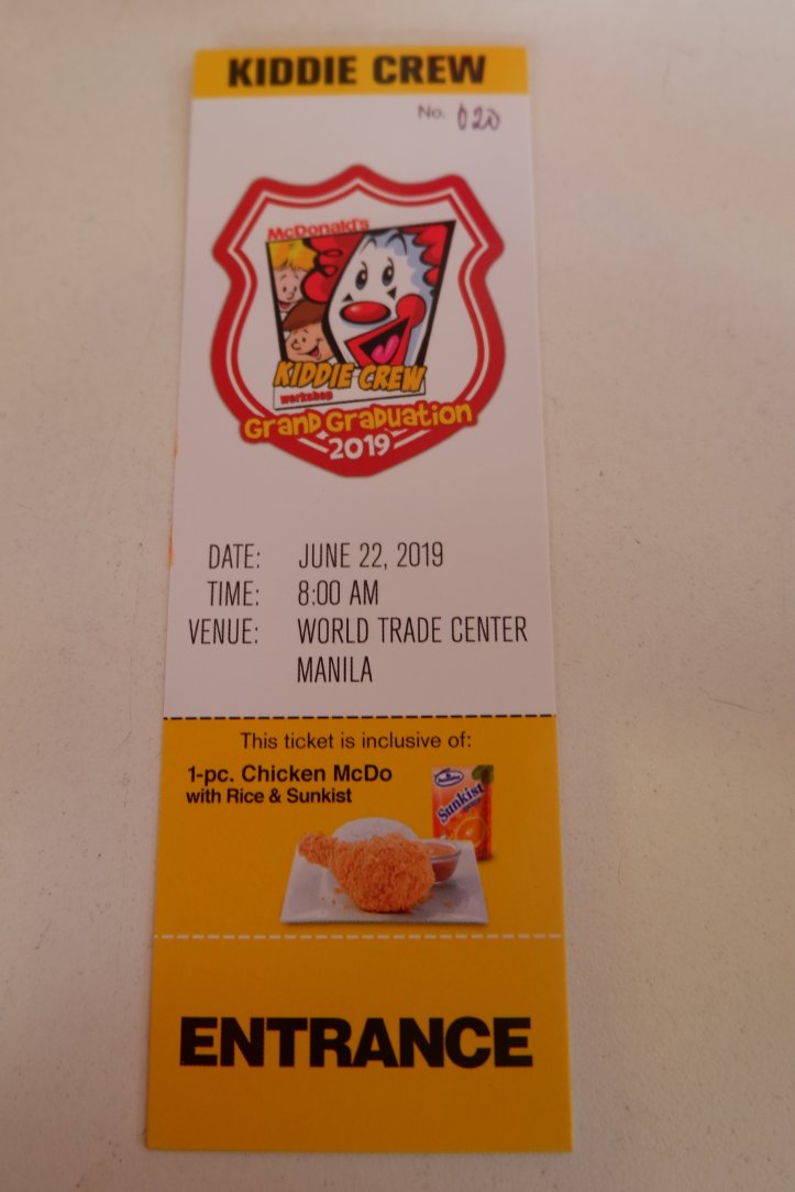 The McDonald’s Kiddie Crew Grand Graduation is on June 22, 2019 at World Trade Center.Free entrance for the Kiddie crew and for the companion Php 125 per pax.