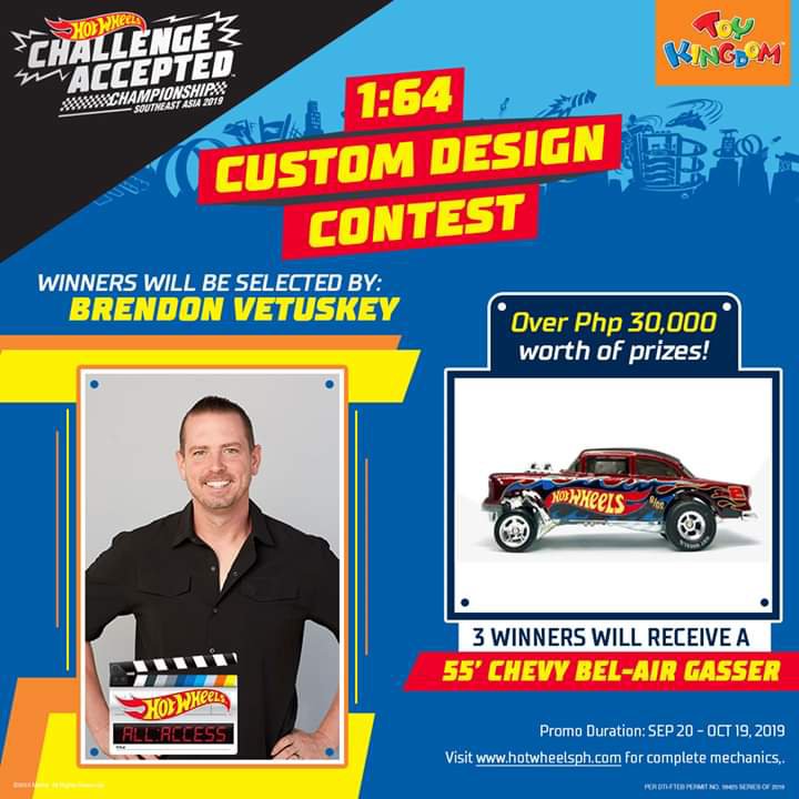 You can bring your own 1:64 customized die-cast cars at SM Mall of Asia. All entries will be judged by Brendon Vetuskey. 3 lucky winners will receive a limited edition – 2018 ’55 Chevy Bel-Air Gasser!