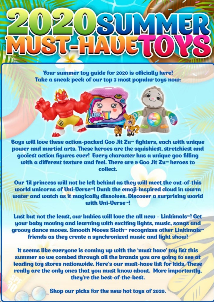 02/24/202002/25/2020 ModernMommaPh 2020 Summer Must Have Toys Share this:TweetLike Loading... Related