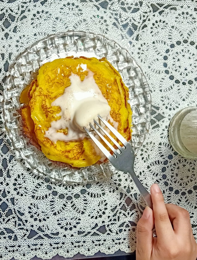 3. Imix ang Dinurog na kalabasa sa Itlog, Evap, Harena at asukal para makagawa ng pancake battter.
