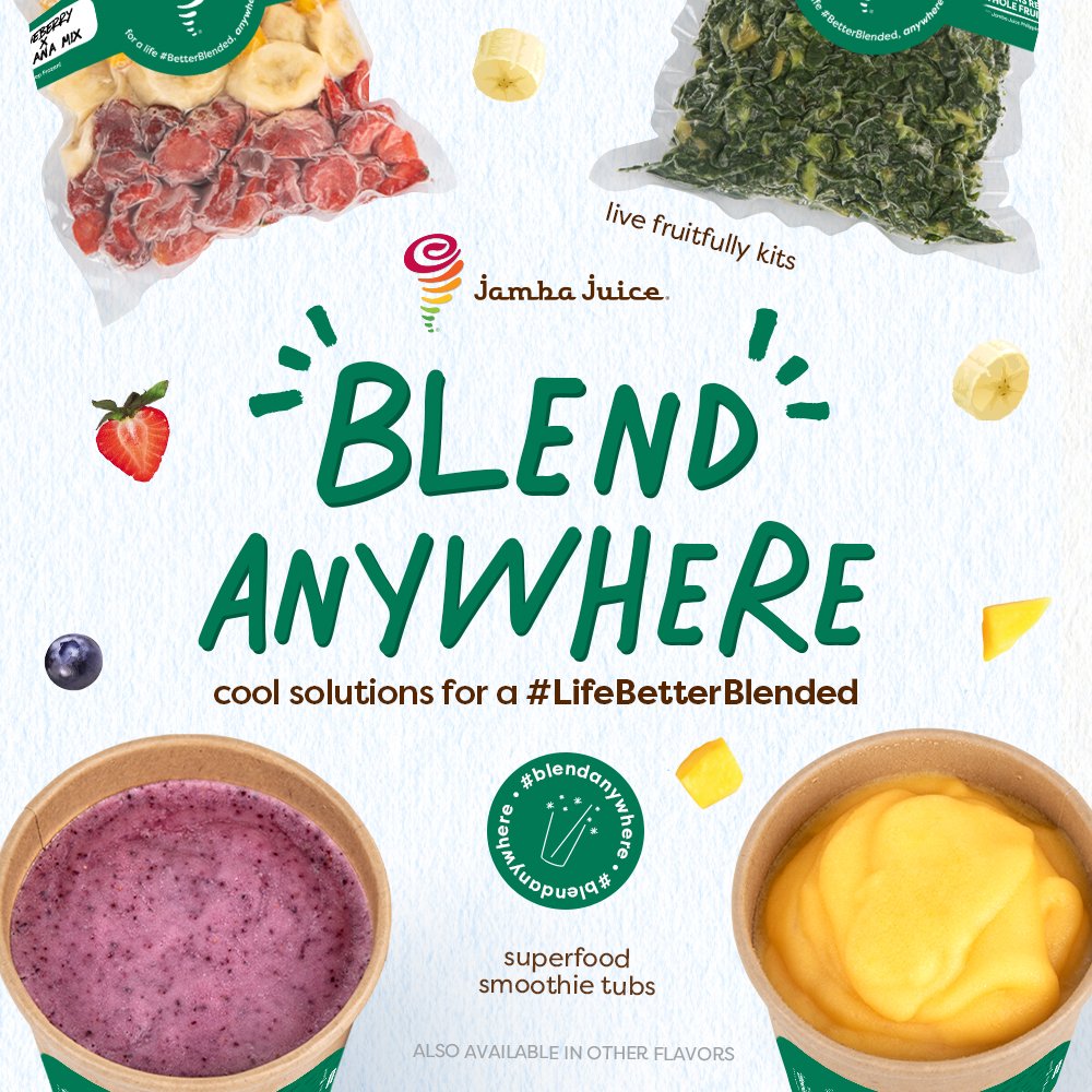 To kick-off the holiday season, Jamba Juice introduces its new #BlendAnywhere frozen products: Live Fruitfully Kits and Superfood Smoothie Tubs.