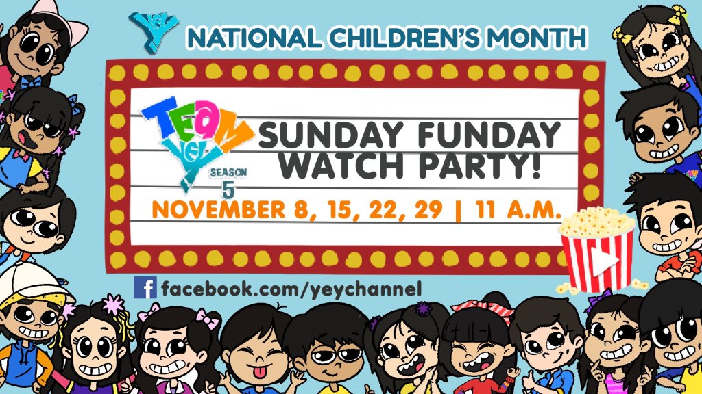 Mas pinasaya pa ng YeY ang National Children’s Month dahil sa kauna-unahang pagkakataon, ipalalabas nito sa watch parties ang mga never-before-seen episodes ng Team YeY’s “Sunday Funday” sa Facebook page nito tuwing Linggo, simula ngayong Nobyembre 8.