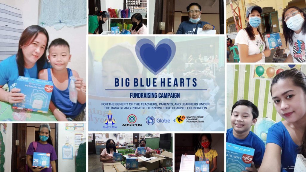 Teachers, students, and parents are experiencing many challenges brought about by the pandemic. That is why Knowledge Channel Foundation, ABS-CBN, Globe Telecom, and Mary’s Way Foundation have partnered for the Big Blue Hearts Campaign, which provides them the tools for teaching and learning such as internet modems and internet load.