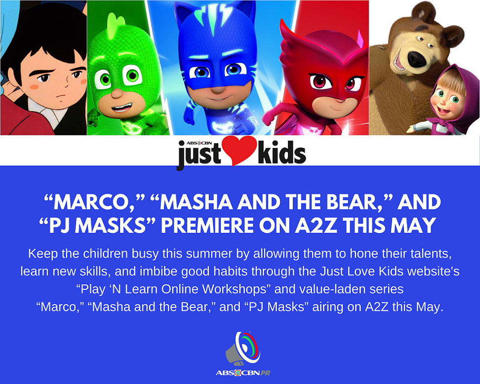 value-laden series “Marco,” “Masha and the Bear,” and “PJ Masks” airing on A2Z this May.