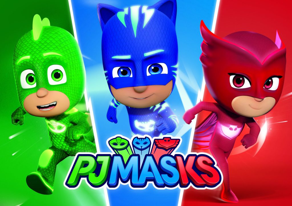 Heroic acts shine in the series “PJ Masks” where little kids Amaya, Greg, and Connor
