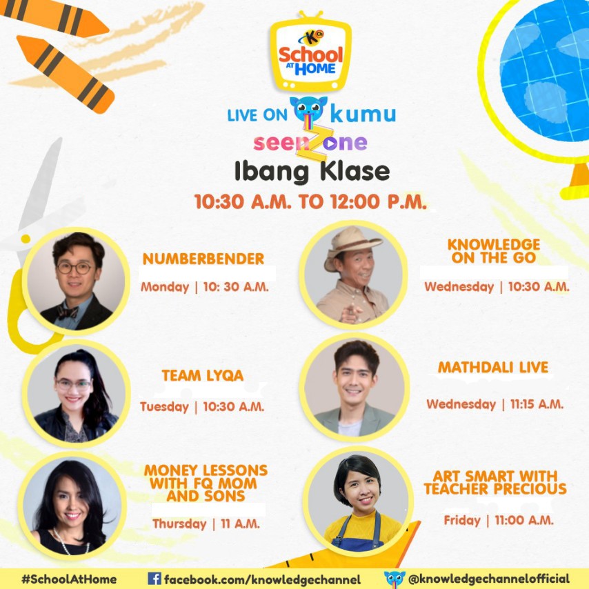 Aside from streaming “Knowledge on the Go” every Wednesday, Knowledge Channel hones the kids’ basic reading skills with Teacher Michelle in “Wikaharian Online World,” while offering them advanced hacks in Math problems with “NumberBender” every Monday.