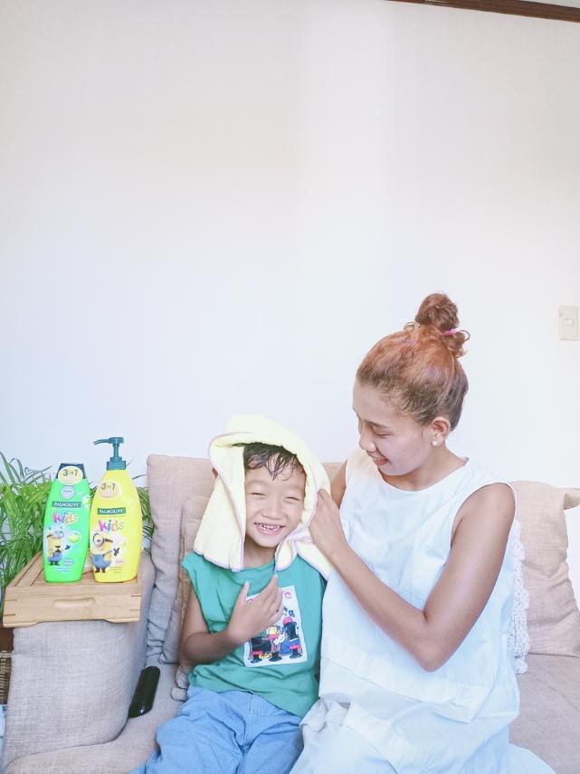 Daryll has very thick curly hair and using palmolive kids shampoo help me to comb his hair easier without irritating tangles.