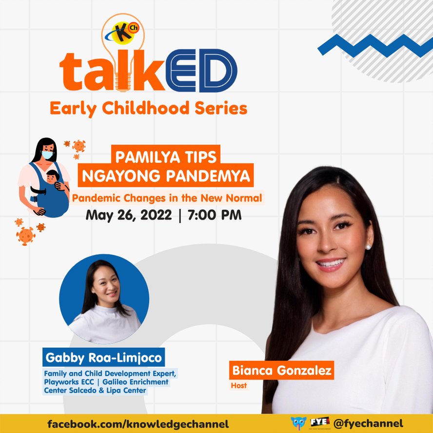 Knowledge Channel continues to promote the importance of early childhood development to Filipino families by launching “TalkED: Early Childhood Series,” an online educational talk show every last Thursday of the month, beginning May 26, streaming on Knowledge Channel’s Facebook page and Kumu’s FYE Channel.