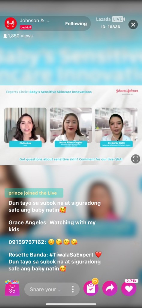 Johnson’s Mombassador Divine Lee-Go together with esteemed guests– MCNAP Nurse Aileen Ongleo, a pediatrician and diplomate from the Philippine Pediatric Society Dr. Marev Matic, and J&J Senior Scientist Kian Chiong– educated moms on topics related to baby’s sensitive skin and how to best protect this through a Lazada Live attended by thousands of moms. While Mombassador Ryza Cenon and Camille Co kicked off a movement to reach out to hundreds of moms for them to experience the protection Johnson’s Cottontouch brings to babies with sensitive skin.