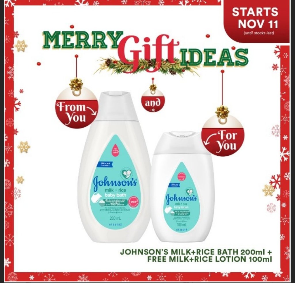 Enjoy getting discounted prices and special holiday promos on your favorite Johnson’s Baby products— giving your kids the gift of nurture and nourishment through healthy skin and hair!