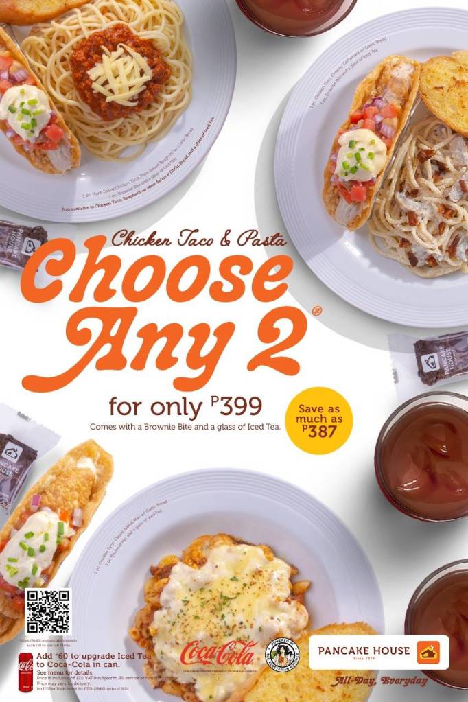 Taco and Pasta Choose Any Two® for only P399, Chicken Taco and Pasta All-You-Can Weekends for