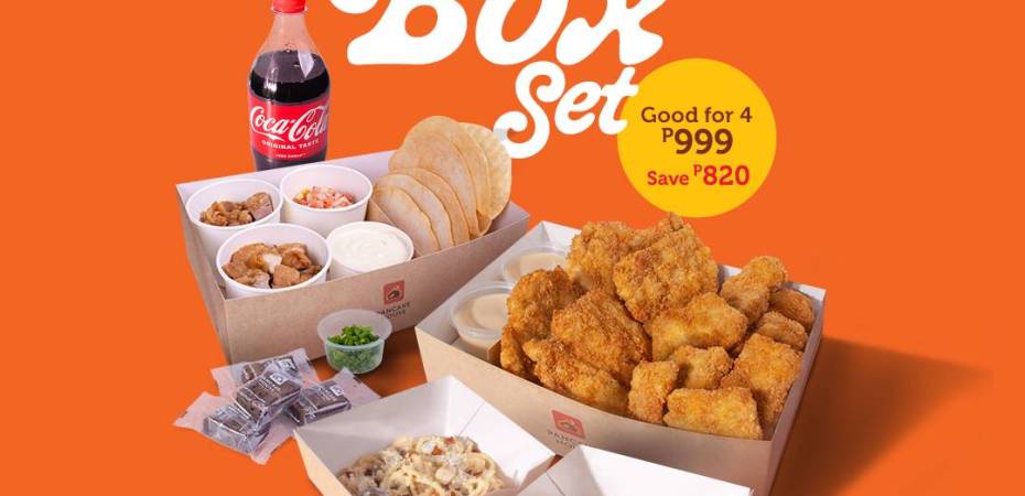 P399 every Fridays to Sundays of March, and the Chicken Box Set that serves a feast of 4 for only P999.