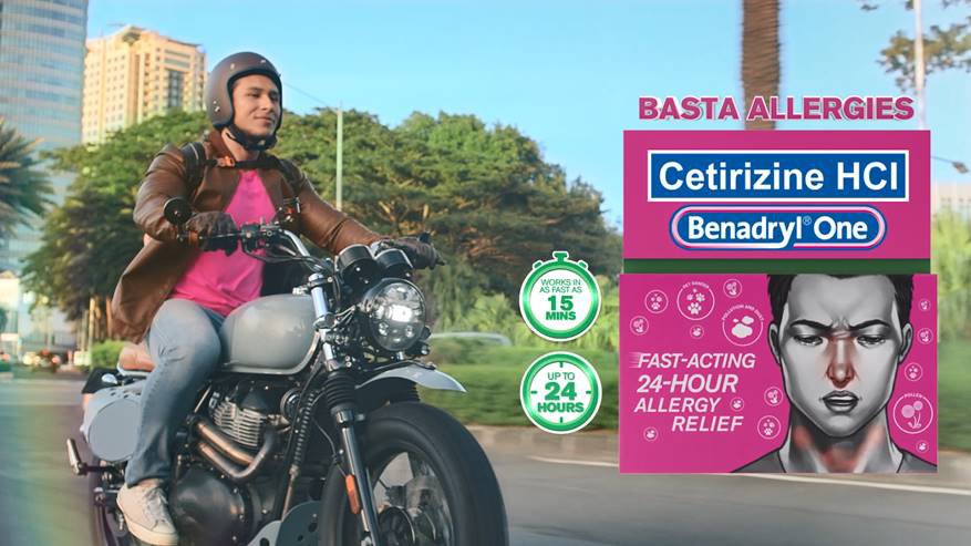 Allergy experts are concerned that the prevalence of allergy is increasing among Filipinos and that many cases of allergy have remained undetected. Studies show that seven out of ten allergy sufferers do not even know that what they are experiencing is caused by an allergy. In fact, most of us attribute our allergy symptoms to common colds. Although colds and allergies share the same symptoms, they are very different conditions. Common colds are caused by viruses, while allergies are caused by different allergens. There are several kinds of allergens for different people—it can be a change in weather that can trigger seasonal allergies, or it can be from more common allergens like dust, pollen, or pets that we are exposed to all-year round. This is where Benadryl® One comes in. Cetirizine (Benadryl® One) is used for the symptomatic relief of allergic conditions including rhinitis and chronic urticaria. It has a diverse portfolio of antihistamines to suit your allergy needs. Allergy medicines also come in various types, most common and widely used are antihistamine drugs that help manage the early signs and symptoms of various allergies and provide quick and long-lasting relief to the patient. Cetirizine, like Benadryl One, is for those who want non-drowsy 24 hour allergy relief. Diphenhydramine, such as Benadryl AH, is for when your allergy attacks are too much and you are looking for fast allergy relief and rest.