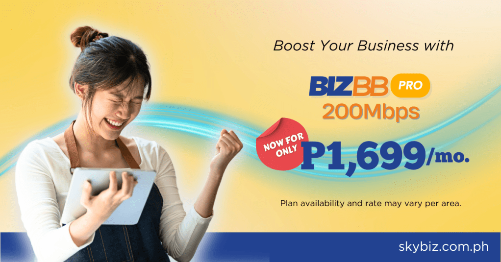 SKYBIZ, the business solutions arm of SKY, launches its boosted BIZBB broadband plan, BIZBB 2.0, dedicated to helping manage day-to-day work productivity and seamless communication with its high-speed 200Mbps internet plan priced at P1,699 a month.