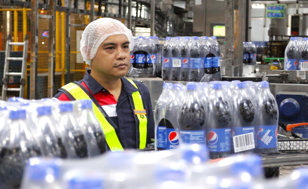 Pepsi-Cola Products Philippines, Inc. (PCPPI) strengthens focus on ensuring safety and security. Employee engagement is key to implementing policies and standards across PCPPI’s nationwide locations. Shown above is an employee overseeing product inspections.