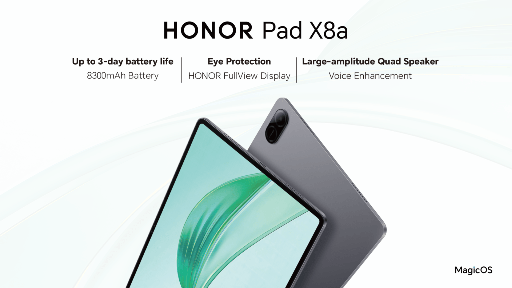 The HONOR Pad X8a offers App Extender, a function that allows users to simultaneously open two windows for one app, and Multi-window, a feature that allows the user to display four apps concurrently that seamlessly operate at the same time. With MagicOS 8.0, users with HONOR smartphones can benefit from seamless inter-device interactions such as file sync, and app continuity, allowing them to pick up where they left off on any device.