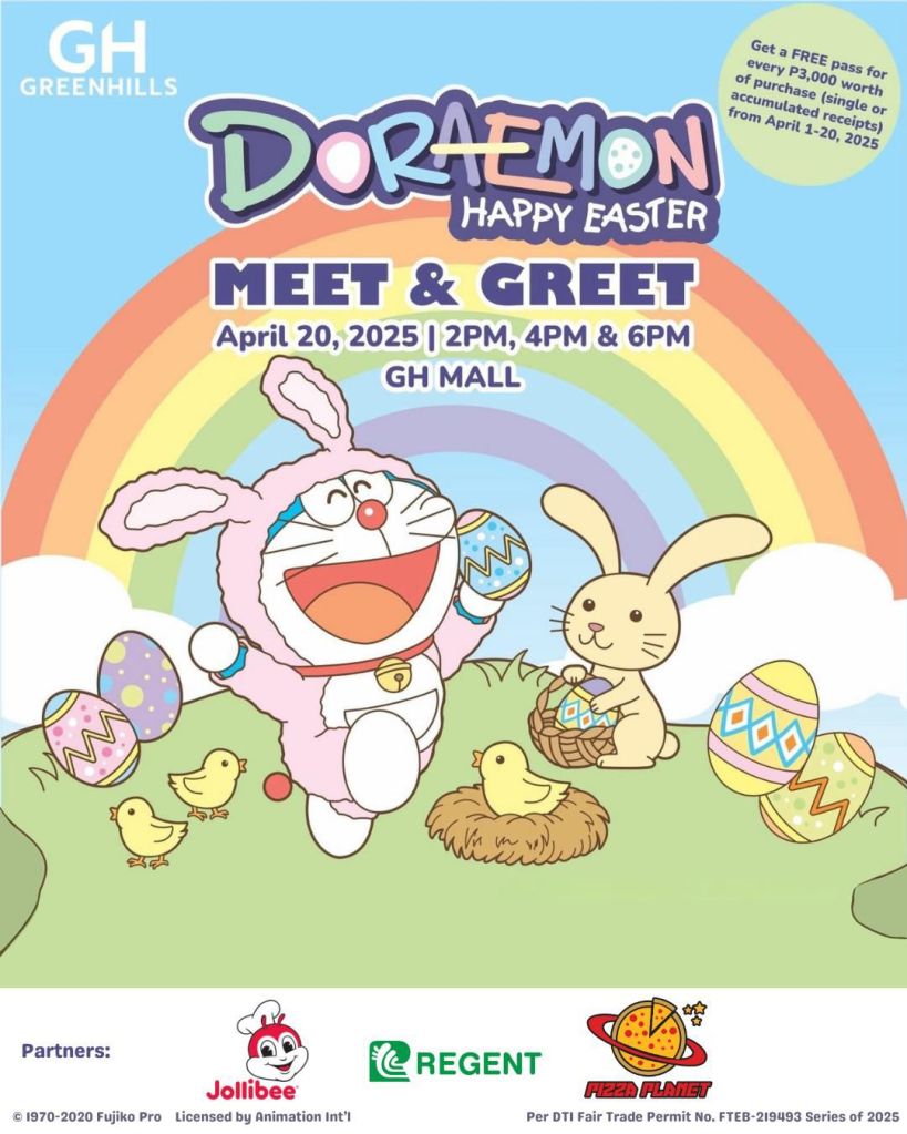 At GH Mall, experience the Doraemon Happy Easter Meet and Greet event at 2pm, 4pm, and 6pm. There will be singing, dancing, games, and, of course, a fun Easter egg hunt for the whole family. You and your kids can also take cute snaps with Doraemon himself!
