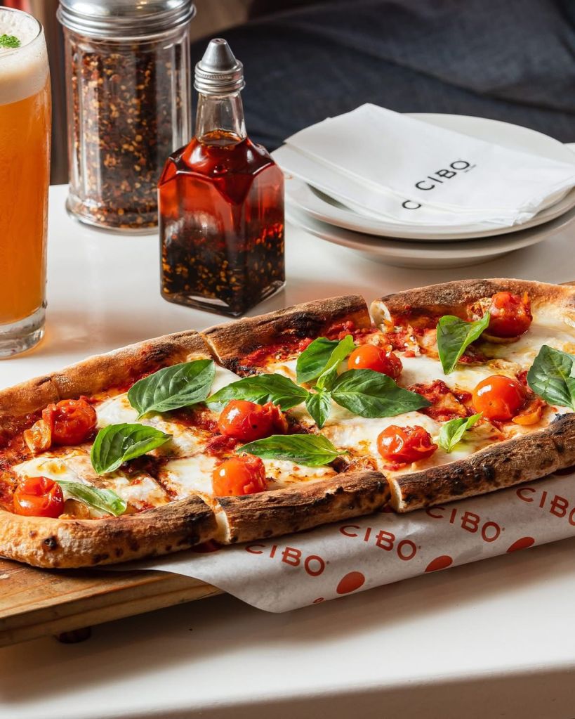 Diners at Cibo in MOA Square can delight in the simple yet classic flavors of their Tomato Basil Pizza Margherita.