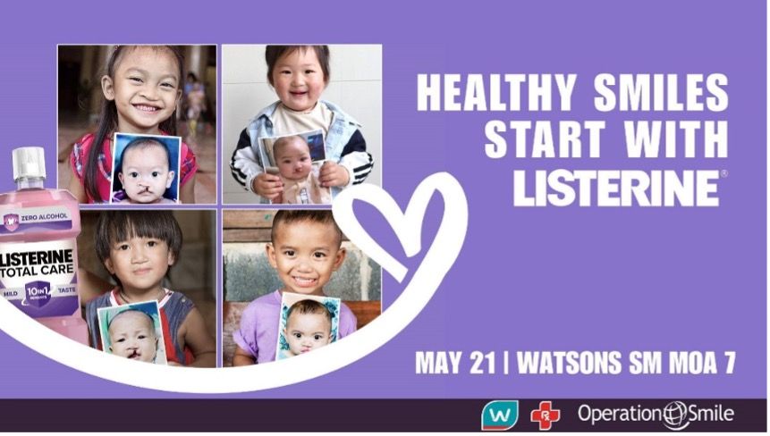 For every LISTERINE product purchased at Watsons stores, a Php10 donation will be made to fund speech therapy for children with cleft lip and cleft palate by Operation Smile