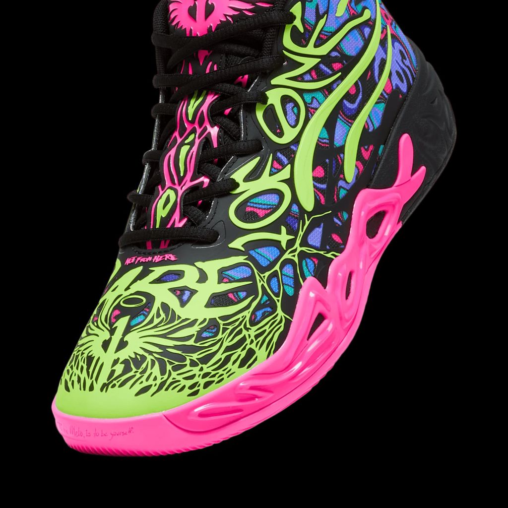 Also part of Melo’s collection with PUMA is the MB.04 Iridescent Hornets, which adds a dimension to both your style and your game. It comes in an eye-catching blue and purple colorway, complete with hidden Melo phrases and alien tentacles in the design. Of course, you can’t forget the iridescent hornet right at the heel, in homage to his NBA team, the Charlotte Hornets.