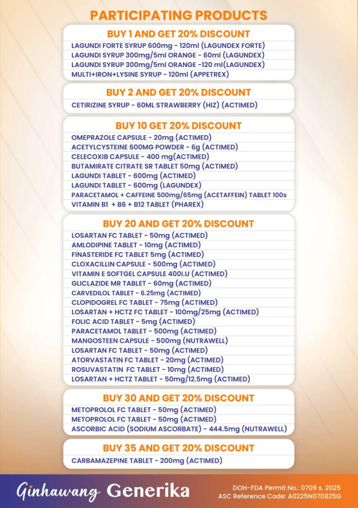 To help more families access the essentials, Generika Drugstore is offering special discounts on select Actimed products all throughout Generics Awareness Month.